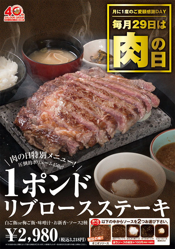 そして、大好評の肉の日特別メニュー 1ポンドリブロースステーキもございます!