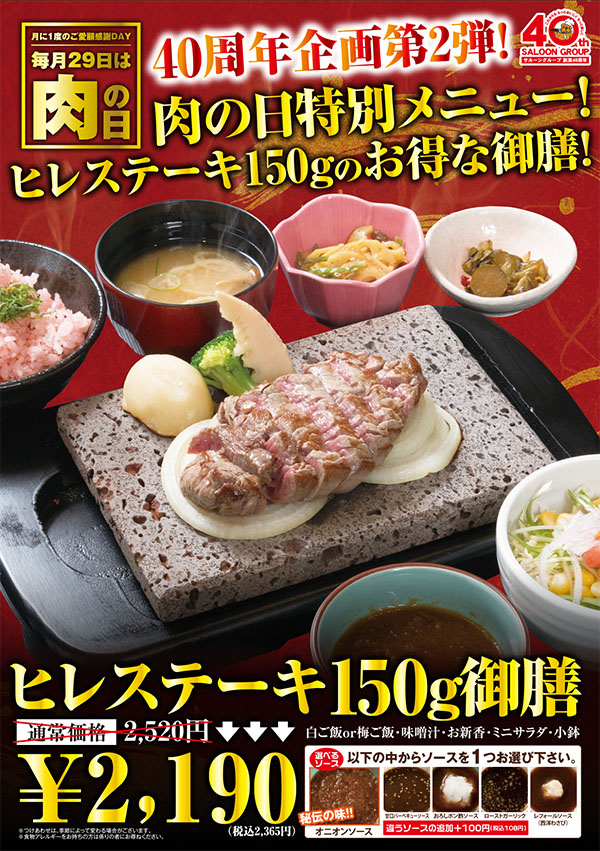 肉の日特別メニューが登場!ヒレステーキ150gのお得な御膳!!
