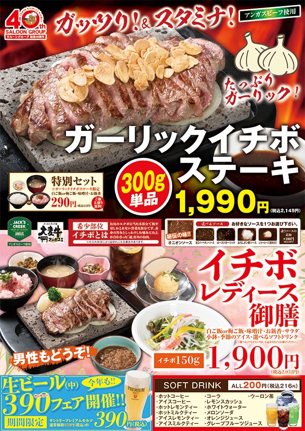 ※ガーリックイチボステーキとイチボレディース御膳は北陸エリアのお店限定となります。