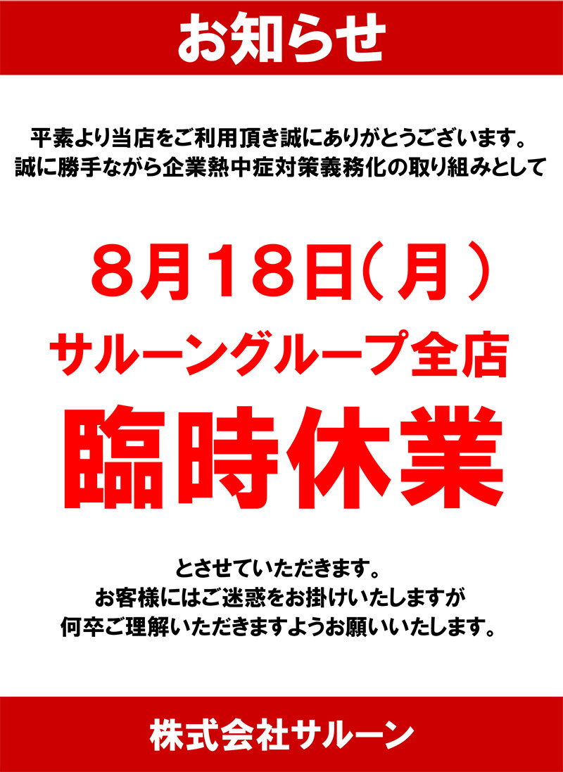 【告知】おかげさまで20周年!サルーングループ誕生祭!!