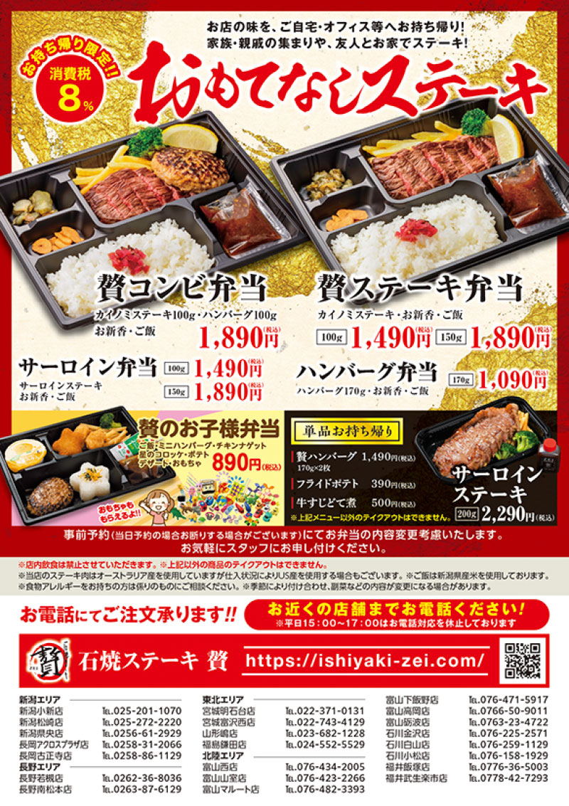 ※お弁当は全店で実施、オードブルは東北4店舗・新潟6店舗・北陸エリアは期間限定となっております。